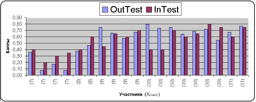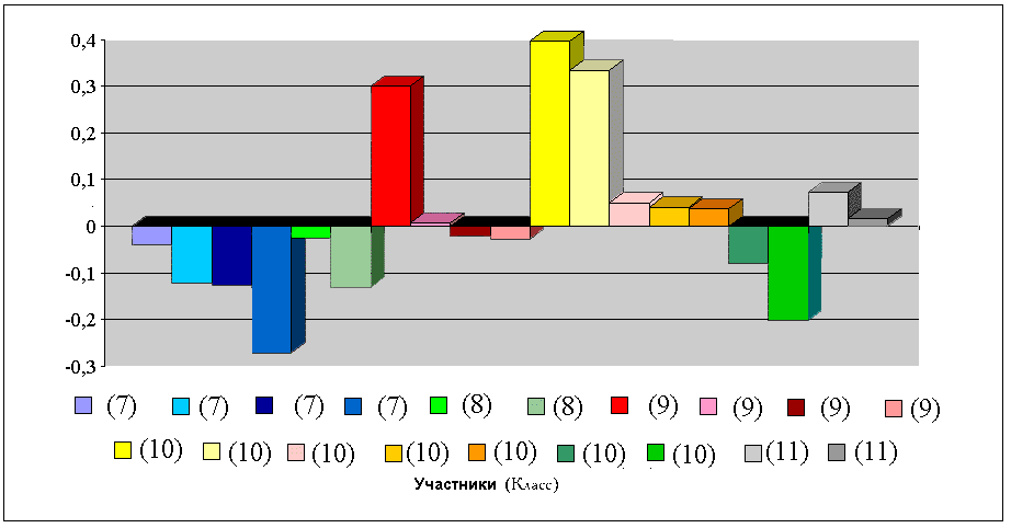 Также значительно затрудняло работу проекта большое количество участников (21 человек), так как проект был рассчитан на 10-15 человек. Тем не менее, следует отметить, что работа в проекте была продуктивной, на что указывает сравнение результатов входного и выходного контроля (см. приложение 3). В целом, динамика хода проекта (разница между результатами входного и выходного контроля) положительна (см. приложение 4).